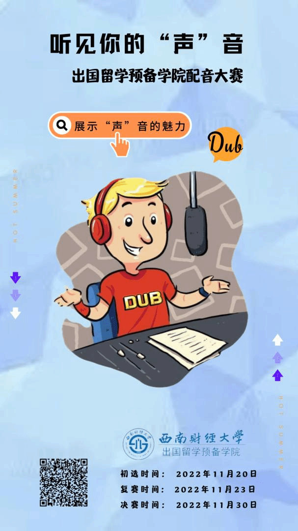 为进一步激发学生的活力,丰富校园文化生活,增强学生之间的情感联系,提高学生们对语言学习的兴趣,感受语言的魅力,展现学院学子乐观向上、积极进取、勇敢坚毅、温暖有爱的青春风采,让学生们用青春的“声”音,演绎自己的角色,传递正能量,共同创建宜居宜学的良好学院氛围。