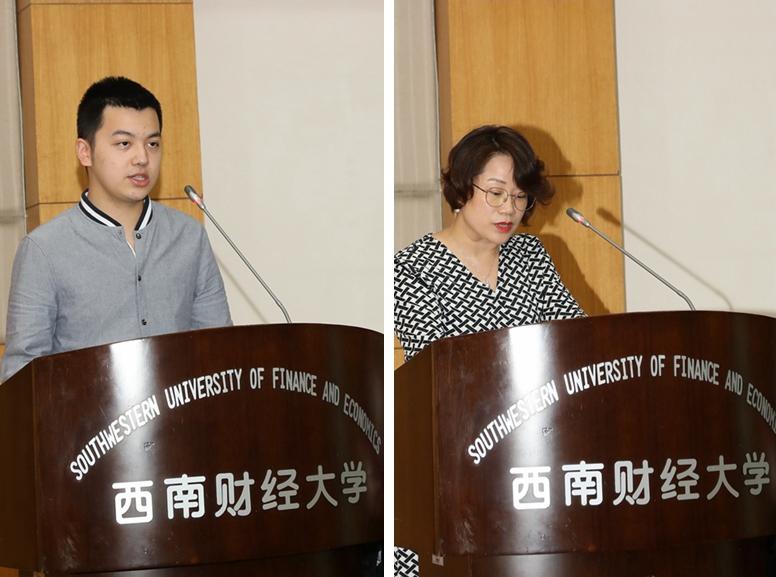 随后,参会领导为同学们分别颁发了“雅思考试单项奖”、“优秀学生奖”和“优秀学生干部奖”,并为学生颁发了结业证书。最后,典礼在全体与会人员同唱《国际歌》中圆满结束,在深情的歌声中,大家缓缓走出礼堂,在光华楼前合影留念,定格了在西南财经大学光华园学习和生活的美好时光。