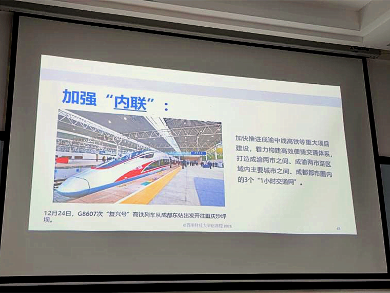 的学生们大部门来自于川渝地区,更应当对此有深刻的认识,同时成渝经济圈也将为归国后的同学们提供一个宽阔的舞台。那么,《成渝双城经济圈战略》究竟是什么呢?怎样建设?面临了什么机遇和挑战呢?