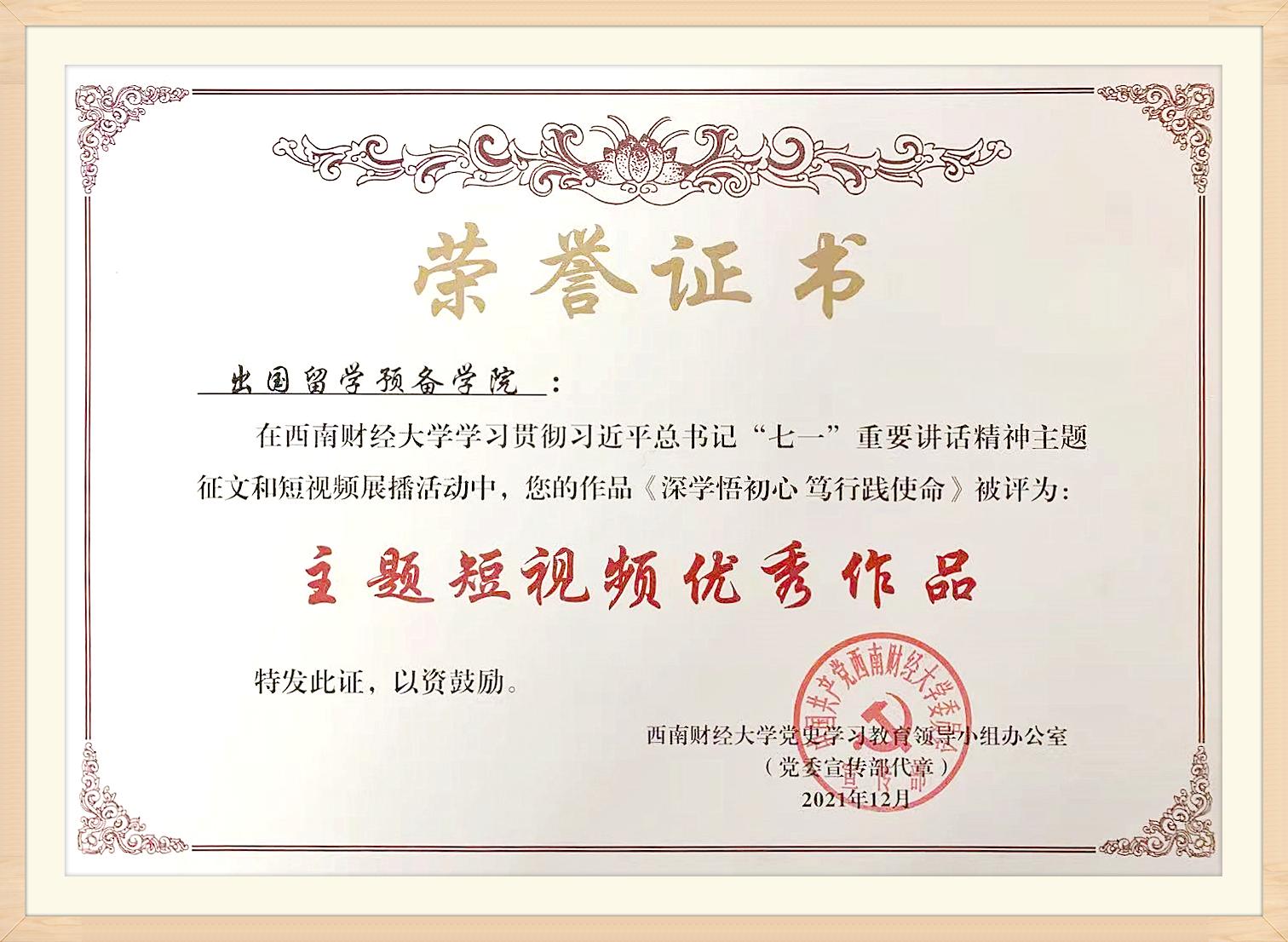 高度重视、广泛动员,把征集工作作为党史学习教育的一项重要内容来抓,向学校报送的短视频作品《深学悟初心 笃行践使命》荣获“主题短视频优秀作品奖”。