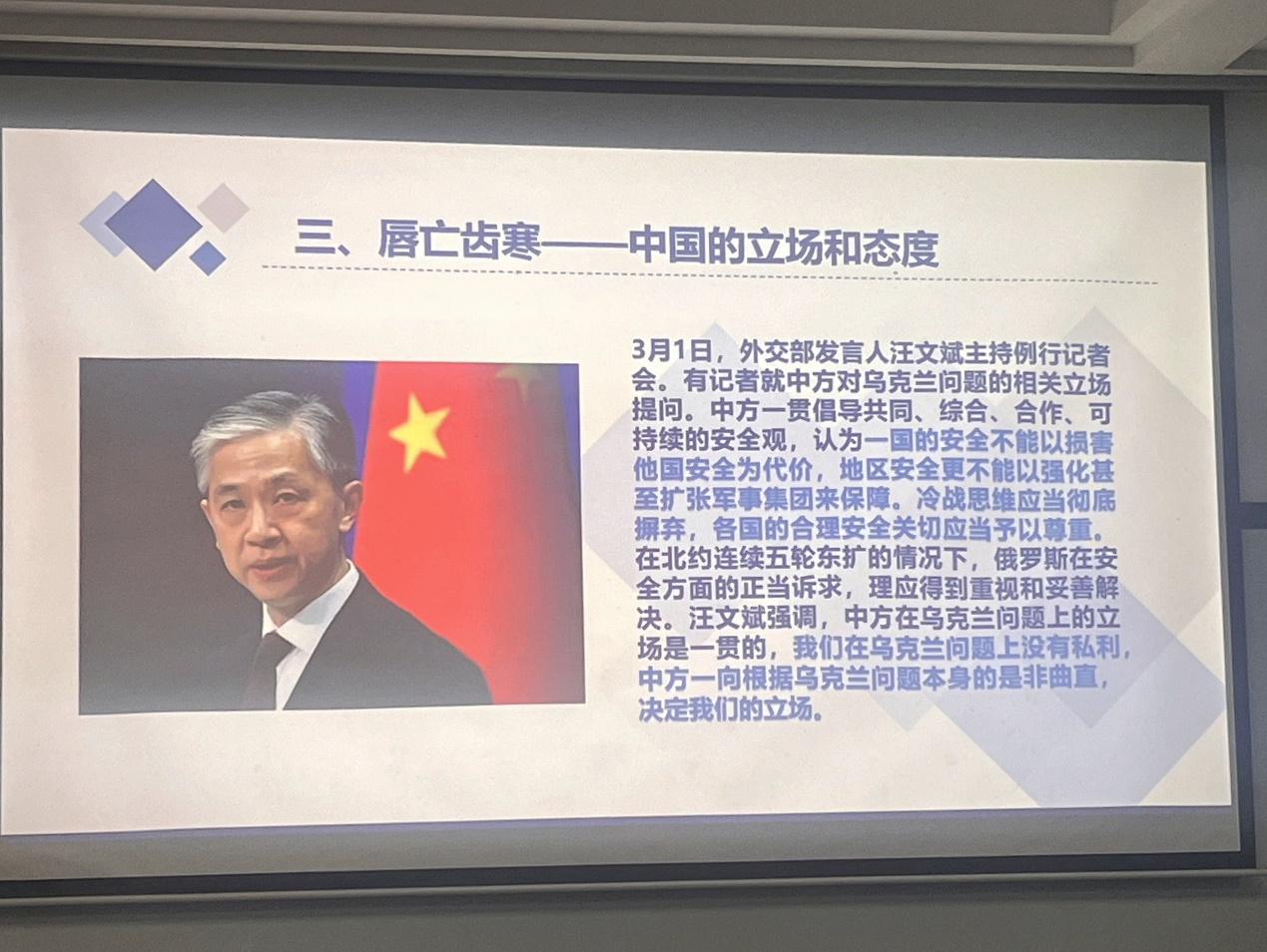 外交部发言人汪文斌强调:“中国一向都根据乌克兰问题本身的是非曲直,来决定我们的立场。”