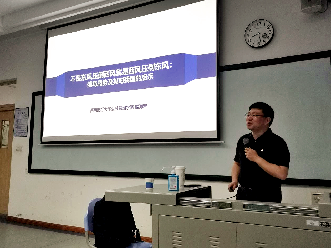 3月15日,学院特别邀请了来自西南财经大学公共管理学院党委书记赵海程老师为全院学生带来了一场主题为“俄乌局势及其对我国的启示”的讲座,让同学们在关注国际热点的同时,保持客观理智的态度,珍惜和平、向往和平。