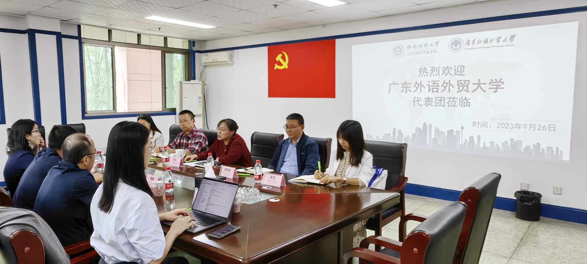 副院长范映红及相关部门负责人在光华楼211会议室与来宾进行座谈交流。