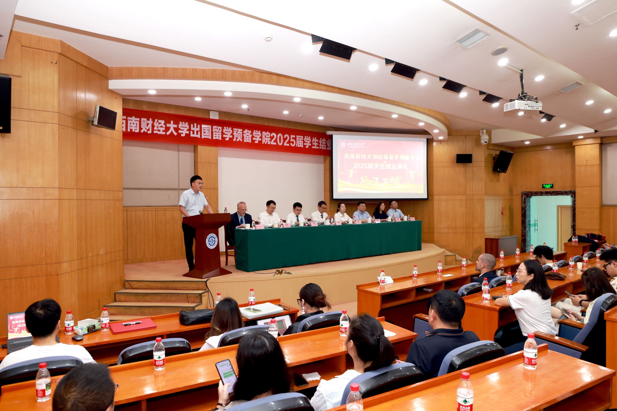 院长袁松阳代表学院教职员工向顺利完成国内阶段学业的同学致以热烈的祝贺,向一路陪伴同学们成长的家长和老师表示诚挚的感谢。他回顾了同学们在光华园的学习历程,高度肯定了同学们在跨文化适应与专业能力等方面的成长,希望同学们在留学的征途上能永葆求知热情和探索锋芒,坚守自己的梦想和信念,传承和弘扬“经世济民 孜孜以求”的西财精神 ,努力实现自我超越,在世界舞台上绽放属于自己的光彩,争做担当民族复兴重任的时代新人。
