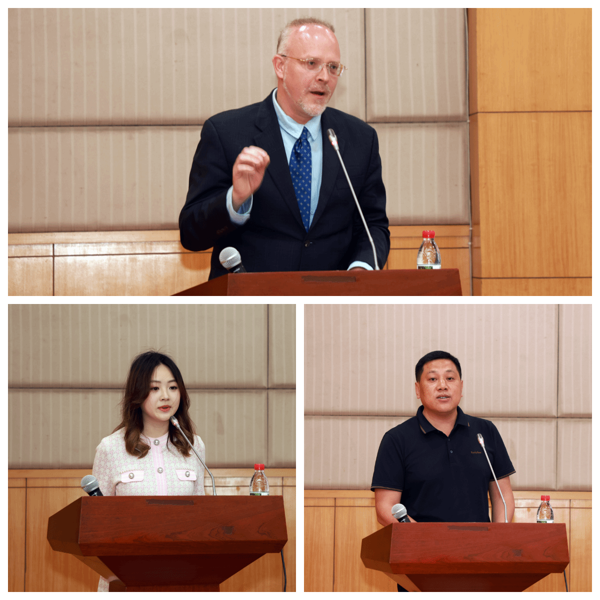 院长袁松阳、副院长范映红,副院长邓忠波及外籍教师代表Mr Dale William Coker出席了本次结业典礼。学院2025届学生、部分学生家长代表及学院全体教职员工参加了本次结业典礼。
