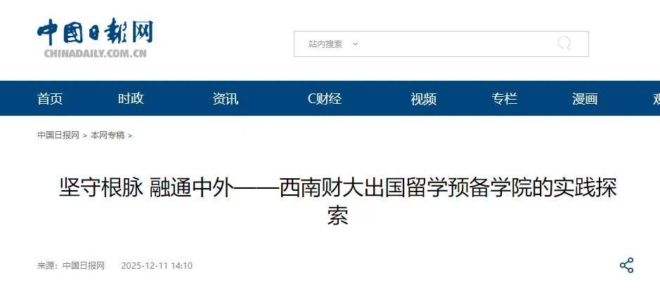 党的二十届三中全会明确提出推动高水平教育对外开放,将其提升至国家战略高度。在此背景下,西南财经大学立足百年办学积淀,以“坚守文化根脉、服务国家战略”为核心,走出了一条独具特色的高质量发展之路,深刻诠释了“让留学人才培养承载民族复兴之梦”的时代内涵。