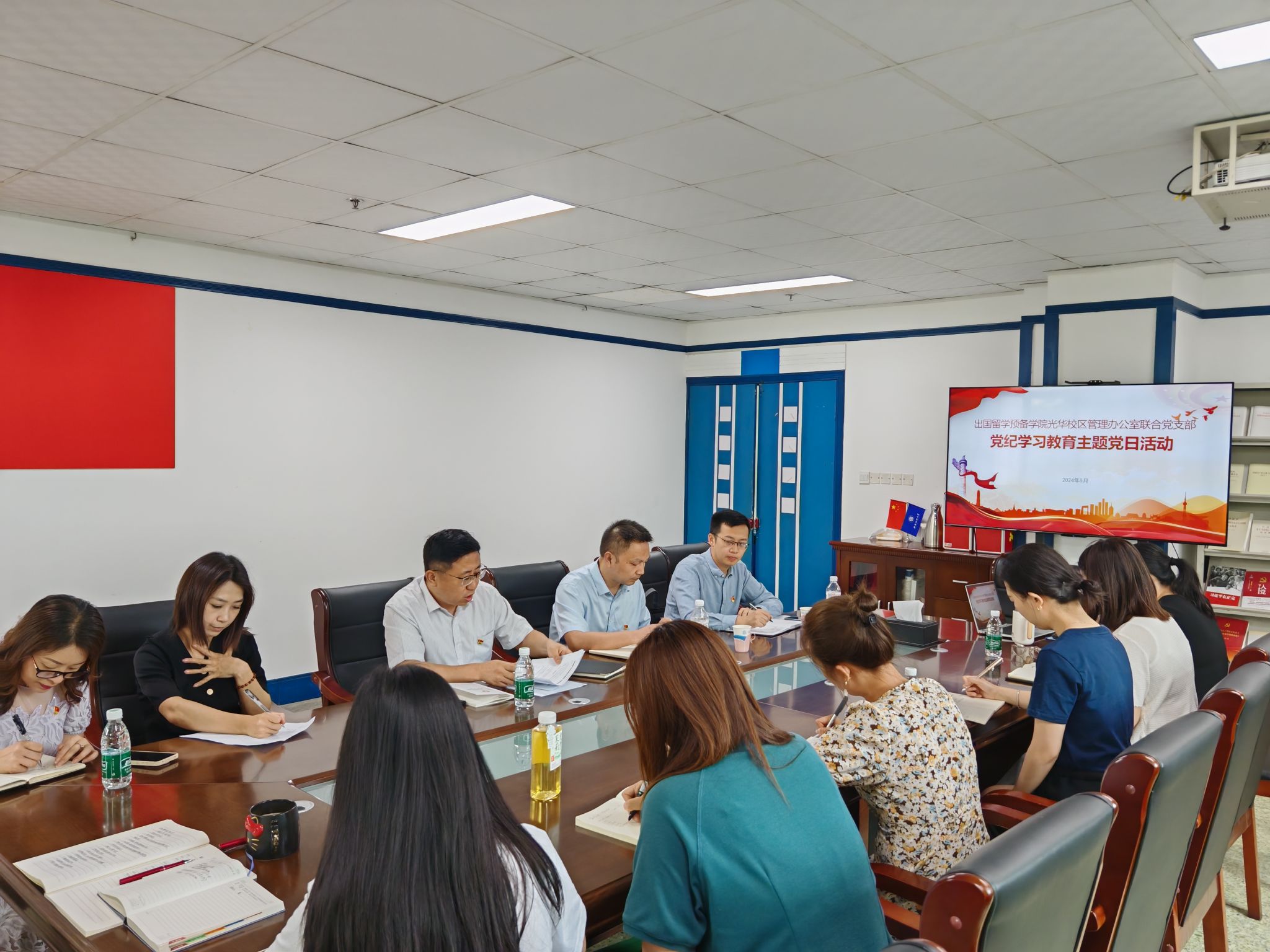 为深入学习贯彻习近平总书记关于党纪学习教育的重要讲话和重要指示精神,5月24日上午,澳门跑狗图-澳门跑狗图解析 光华校区管理办公室联合党支部在光华楼211开展党纪学习教育主题党日活动,机关与直属单位党委副书记、纪委书记曾双宝、支部副书记邓忠波及支部党员参加会议,邓忠波主持会议。
